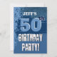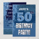 Ce design en nuances de bleu avec ses lettres gronces est une façon amusante mais élégante pour les gens invitations à une fête de 50e anniversaire. Tout le texte est entièrement personnalisable. Cette invitation est actuellement présentée sur un papier métallique dans une hutte de glace qui donne à votre invitation surprise d'anniversaire un étincelle festive et brillant.
