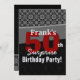 Here's a trendy surprise birthday invitation with matching save the date postcard in black and white with accents of red. Fun ! Tout est customizable.