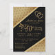 Invitation pour les 50 ans de mariage prête à être personnalisée. Présentée dans un beau motif de cœur doré sur fond noir et deux cœurs en métal doré et la mention 50ème dans un design orné métallisé doré. Cette belle invitation sera un succès auprès de vos invités de fête. Elle fonctionnerait également bien pour tout autre événement ou occasion, comme une fête de fiançailles, une fête d'anniversaire de mariage, un cocktail, une remise de diplôme, une retraite, un mariage, une douche, une fête d'anniversaire, des événements d'entreprise, des événements de gala, des fonctions d'appréciation de la clientèle, des inaugurations, etc... en changeant simplement le texte et, si nécessaire, en déplaçant ou en supprimant des éléments graphiques individuels. Un design moderne prêt à être personnalisé pour votre fête ou événement.