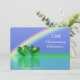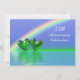 Cartes d'invitation pour le 55e anniversaire de mariage avec mon œuvre d'art 3D représentant un arc-en-ciel dans un ciel bleu et deux cœurs verts émeraude brillants flottant sur l'eau.