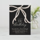 Invitation 55th Birthday Party Black White Coquette Pearl Bow
