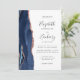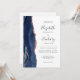 Le bord gauche de cette élégante faire-part de mariage moderne est orné d'une bordure en aquarelle bleu marine ornée d'une parties scintillant en or rose. Le texte personnalisable combine écriture manuscrite grise au fusain, cuivre et polices italiques sur un arrière - plan blanc. L'envers offre des espaces pour 5 photos (3 horizontales, 1 carré et 1 verticale) et de la place pour l'URL de votre site mariage ou d'autres messages brefs.