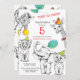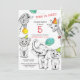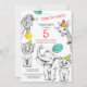 Invitation de 5ème anniversaire avec des illustrations d'animaux mignonnes amusantes dessinées dans un style crayon.