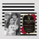 Design élégant en noir, rouge avec faux or brillant. Caractéristiques rayures noires et blanches, police script, roses rouges et confettis. Peut être personnalisé pour n'importe quelle année ! Envoyez-moi un message si vous avez besoin de plus de personnalisation.