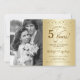 Invitation pour le 5e anniversaire de mariage avec photo. Design élégant en or avec police de caractères script et confettis. Peut être personnalisé pour afficher n'importe quelle année de mariage. À 5 ans de mariage !
