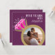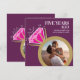 Invitez vos amis et votre famille à une fête spéciale pour votre cinquième anniversaire de mariage ou à une célébration de dîner avec ces couleurs or, rose, rose vin foncé et blanc. Des graphismes de bague en or et en tourmaline rose et une photo de "à l'époque" et "aujourd'hui" au centre des invitations pour le 5ème anniversaire de mariage. Personnalisé avec vos propres photos de votre jour de mariage et une photo actuelle au verso, puis ajoutez vos propres mots de célébration, la date et le lieu de la fête. D'autres articles assortis sont disponibles. Dessin original de l'anneau graphique par www.mylittleeden.com sur Zazzle.