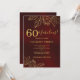 Modèle d'invitation pour une fête d'anniversaire de 60 ans élégant et luxueux inspiré des objets anciens, avec des feuilles, du feuillage et une typographie dorée stylisée sur un fond bordeaux foncé antique en détresse. ----- L'invitation convient pour toutes les saisons et les étapes importantes de la vie - trente, quarante, cinquante, soixante, soixante-dix, quatre-vingts, quatre-vingt-dix, cent ans - ou d'autres célébrations d'anniversaire. ++++++++++++ Il est entièrement éditable et facile à personnaliser avec vos informations !