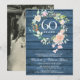 Invitation d'anniversaire de mariage 60e ou 75e avec une délicate guirlande florale de verdure à l'aquarelle sur un fond de panneaux de bois rustique bleu. Personnalisez avec vos informations d'anniversaire de diamant ou de platine. Le verso présente votre photo de mariage, un beau souvenir pour vos invités. Conçu par Thisisnotme