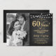 Invitation au 60e anniversaire du Mariage avec photo. Design élégant en noir et faux or. Comprend un motif de tableau noir, une police de script et des lumières de chaîne de fées. Salutations à 60 ans ! Peut être personnalisé dans n'importe quelle année. Message-moi si vous avez besoin d'une personnalisation plus poussée.