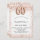 Pour un 60ème anniversaire élégant. Un arrière - plan blanc. Décoré d'or rose, confetti. Personnalisez et ajoutez un nom, ainsi que les détails du parti. Le nom est écrit avec un script de style écrit à la main, numéro 60 avec des polices de style ballon.