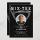 Célébrez avec style cette invitation inspirée du golf avec un jeu de mots "Six-Tee (et toujours sur le pair)". L'arrière - plan noir met en valeur un club de golf audacieux et un tee design, avec une photo personnalisable de l'anniversaire honoré à l'intérieur du ballon de golf. L'arrière présente un club de golf, ajoutant une touche ludique et sportive. Parfait pour fêter un anniversaire important pour tous les amateurs de golf ! Entièrement personnalisable avec les détails de l'événement.