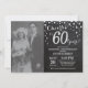60e Anniversaire de Mariage avec photo personnalisée. Invitation Ardoise Noire et Argent. Soixantième Anniversaire de Mariage. Fond Diamant Pailleté Ardoise Noir et Argent. Confettis Argentés. Anniversaire Adulte. Fête d'anniversaire pour homme ou femme. Pour une personnalisation supplémentaire, veuillez cliquer sur le bouton "Personnaliser" et utiliser notre outil de conception pour modifier ce modèle.
