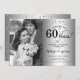 Invitation pour 60e anniversaire de mariage avec photo. Design élégant en argent et noir avec police script et confettis de diamants. Peut être personnalisé pour afficher n'importe quelle année de mariage. À 60 ans de bonheur !