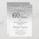 Invitation pour la célébration des 60 ans de mariage. Design argent et blanc avec guirlande lumineuse et police d'écriture élégante. À vos 60 ans ! Peut être personnalisé pour n'importe quelle année de mariage. Cartes d'invitation Zazzle imprimées ou modèle numérique à télécharger instantanément. Parfait pour une célébration élégante de 60 ans de mariage diamant.