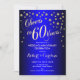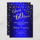 Invitation à la célébration du 60e anniversaire de mariage. Invitation imprimée ou modèle numérique en bleu royal saphir et feuille d'or à paillettes fausses. Caractéristiques de la police de caractères et des confettis. À 60 ans, c'est la fête ! Parfait pour une célébration élégante de 60 ans de mariage.