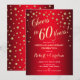 Invitation à la célébration du 60e anniversaire de mariage. Invitation imprimée ou modèle numérique en rouge et or faux brillant. Caractéristiques de la police de caractères script et confettis. À 60 ans de mariage ! Parfait pour une célébration élégante de 60 ans de mariage.