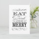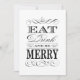Elégante invitation personnalisable avec les mots Manger, Boire et être Joyeux. Convient à de nombreuses occasions - dîners gastronomiques, dégustations de vin, dîners.