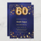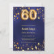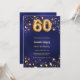 Une invitation moderne et design pour un 60ème anniversaire. Un arrière - plan bleu marine, décoré d'étoiles dorées. La couleur bleue est inégale. Personnalisez et ajoutez votre nom et les détails de votre fête.