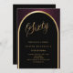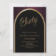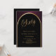 Une élégante invitation pour les 60 ans. Un fond noir et bordeaux avec une arche dorée sur le devant.