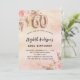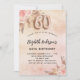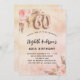 Un arrière - plan d'or rose, rustique et rustique à l'aspect rustique et rustique. Décoré de fleurs roses d'or et de rose, de roses, d'herbe de pampas. Personnalisez et ajoutez un nom et des détails du parti. Le numéro 60 est écrit avec une police de style ballon.