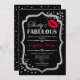 Invitation du 60e anniversaire. Design élégant noir blanc avec fausse parties scintillant argent. Comprend des lèvres rouges baiser, confetti et police de script. Parfait pour une soirée d'anniversaire élégante. Soixante Fabuleux ! Message-moi si vous avez besoin d'une personnalisation plus poussée.