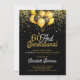 Une élégante surprise 60ème et sensationnelle fête d'anniversaire surprenante sur une invitation en or sur invitation noire avec parties scintillant d'or et ballons d'or et noir. Moderne et élégant avec un type de script de calligraphie.