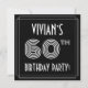 L'avant de cette élégante carte d'invitation de fête du soixantième anniversaire comprend un nom personnalisé, un style art déco fantaisiste inspiré du numéro "60e", le message "FÊTE DE L'ANNIVERSAIRE !", et un motif frontalier composé de lignes. L'avant a également un arrière - plan de couleur noire par défaut, mais il peut être customisé à une couleur différente si désiré. Le verso présente des détails personnalisés sur l'événement, tels que la date, l'heure, l'emplacement/le lieu et toute autre information importante. Des invitations luxueuses, élégantes et personnalisées comme celles-ci pourraient être utilisées pour des invités invitations à une fête d’anniversaire qui se tient pour honorer le 60e anniversaire de quelqu’un. [~Z0000615]
