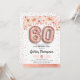 60e anniversaire invitation de fête. Design élégant en faux or rose parties scintillant avec accent floral. Carte Invitation avec numéro d'or rose 60 ballons, police de script avec confetti. Corail blanc rose, blanc. Parfait pour une célébration anniversaire du soixantième siècle. Message-moi si vous avez besoin d'âge personnalisé.