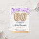 60e anniversaire invitation de fête. Design élégant en parties scintillant d'or faux avec accent floral. Carte Invitation avec numéro or 60 ballons, police de script avec confetti. Violet, lavande et blanc. Parfait pour une célébration anniversaire du soixantième siècle. Message-moi si vous avez besoin d'âge personnalisé.