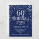 Invitation de fête du 60e anniversaire. Design élégant en bleu marine foncé et faux parties scintillant argent. Comprend des polices de caractères et des confettis stylisés. Message-moi si vous avez besoin d'âge personnalisé.