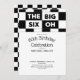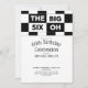 Invitation vos amis et votre famille à une fête de 60ème anniversaire amusante avec des invitations cool, modernes, personnalisables. L'invitation de célébration du soixantième anniversaire présente un motif en noir et blanc en haut avec les mots "The Big Six Oh" en alternant blanc sur noir et noir sur blanc texte. Le 2/3 inférieur de la carte à plat montre les mots "60ème anniversaire de fête" en noir sur un arrière - plan blanc. Customisez le nom, la date et les détails de la partie dans la barre latérale. Le dos est orné d'un classique motif en à damiers noir et blanc. Copyright ©Claire E. Skinner. Tous droits réservés.