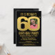 Invitation 60e fête d'anniversaire noir or maintenant puis ph