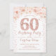 60th Birthday Party Invitation Design élégant en fausse parties scintillant rose or et blanc.