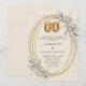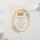 A soft champagne colored background. A faux gold looking frame decorated with sage green greenery and faux diamonds. Personalize and add your names, details. Black text.