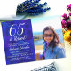 65 ans et retraite Invitation à une fête de retraite et d'anniversaire photo bleu roi