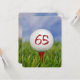 Gros plan d'une balle de golf blanche sur tee rouge dans l'herbe pour l'invitation à la fête du 65e anniversaire.