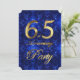 Carton d'invitation pour une fête du 65e anniversaire avec typographie de couleur or 65e anniversaire de mariage Anniversaire de mariage Saphir sur fond élégant bleu saphir doré