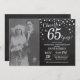 65e anniversaire de mariage avec photo personnalisée. Invitation tableau noir à la craie argent. Soixante-cinquième anniversaire de mariage. Fond diamant pailleté tableau noir et argent. Confettis argentés. Anniversaire adulte. Fête d'anniversaire pour homme ou femme. Pour une personnalisation supplémentaire, veuillez cliquer sur le bouton "Personnaliser" et utiliser notre outil de conception pour modifier ce modèle.
