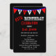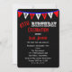 Cette invitation à la fête du 65e anniversaire, amusante et moderne, a des drapeaux rouges et blancs sur le dessus d'un arrière - plan noir. Sur les drapeaux, les lettres H A P P P Y épellent heureux. Sous les drapeaux apparaissent les mots "65e anniversaire de célébration". Les détails de votre fête d'anniversaire peuvent être customisés ci-dessous. C'est un grand invitation moderne à une fête du 65ème anniversaire. Copyright henishouseo