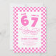 Celebrate turning seven with one of the biggest viral trends kids love! This fun 67 meme–inspired kids birthday party invitation features a cute pink and white checkered background, the iconic “67” meme hands, and the playful saying “I was 6, now I’m 7.”