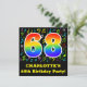 L'avant de cette conception amusante, colorée et vibrante d'invitation de fête d'anniversaire comprend un grand nombre de "68" ayant un motif inspiré par un gradient de spectre arc-en-ciel. Il comporte également un nom personnalisable et le message "68ème anniversaire fête!". Une partie de l'arrière - plan présente un motif de notes de musique amusantes et colorées et des symboles. Le verso contient des informations/détails personnalisables sur l'événement auquel les invités potentiels sont invités. Des cartes d’invitation pour célébrer un anniversaire, comme celle-ci, peuvent être envoyées à des invités potentiels d’une réunion organisée pour honorer le 68e anniversaire d’un chanteur, d’un musicien, d’un compositeur ou d’une autre personne. [~Z0000427]