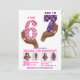 A playful take on the viral six–seven moment, styled in bold pink and purple checker textures for a fun retro vibe. The layout lets the spotlight stay on the milestone while adding cute space for photos and personalized details. Great for kids who love trendy designs and bright color palettes. Works beautifully for playful parties or photo-focused celebrations.