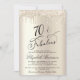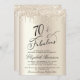 Élégante et chic invitation personnalisée 70ème anniversaire avec "70 & Fabulous" écrit en écriture stylisée contre un arrière - plan de champagne de faux feuille d'or, avec faux parties scintillant or gouttant du haut. Vous pouvez personnaliser l'année, son nom et les détails de la fête.