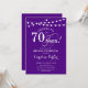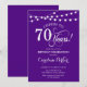 Invitation 70th Birthday Design simple violet avec des lumières à cordes et des caractères de script. Salut à 70 ans ! Peut être personnalisé à tout âge! Message-moi si vous avez besoin d'une personnalisation plus poussée.