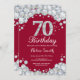 Invitation 70e anniversaire. Bourgogne Rouge et Diamant Strass Argent. Invitation élégante pour fête d'anniversaire. Anniversaire adulte. Anniversaire femme. Anniversaire homme. Pour une personnalisation supplémentaire, veuillez cliquer sur le bouton "Personnaliser" et utiliser notre outil de conception pour modifier ce modèle.