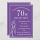 Soixante-dixième anniversaire pour un golfeur, pour elle. Violet violet et blanc, moderne, élégante invitation à la fête d'anniversaire. Veuillez le personnaliser avec vos détails.