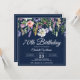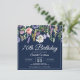 Elégante invitation bleu marine et fleur sauvage 70e anniversaire que vous pouvez personnaliser avec vos détails de fête.