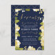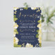 Cette invitation moderne et assez sexagénaire présente une bordure florale illustrée et le mot "soixante-dix" en or. Le arrière - plan est bleu marine, mais peut être customisé à n'importe quelle couleur. L'arrière du invitation comprend un motif de carrelage en or avec un arrière - plan bleu assorti qui peut également être échangé. Le texte est personnalisable pour vos fêtes d'anniversaire spéciales.