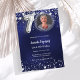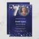 Une invitation photo moderne et design pour une fête de 70e anniversaire. Arrière - plan bleu marine, décoré d'étoiles. La couleur bleue est inégale. Personnalisez et ajoutez vos photos et détails de fête.