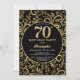 70e anniversaire Black and Gold Floral Pattern Anniversaire Invitation. Pour plus de personnalisation, cliquez sur le bouton "Customiser" et utilisez notre outil de conception pour modifier ce modèle.